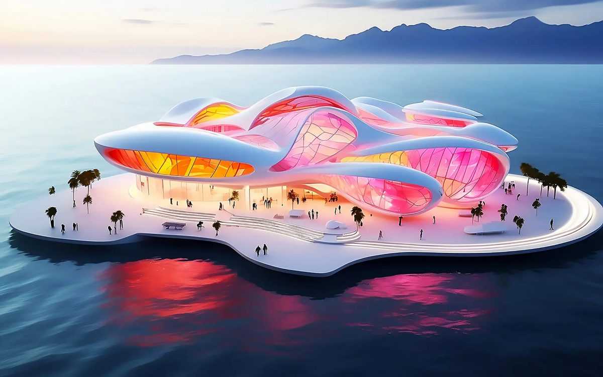 Проект музея стекла на воде Итальянская архитектурная компания Luca Curci Architects предложила уникальный символ экологического сознания и устойчивого развития, где «история стекла сочетается с современными экспериментами». Плавающий Стеклянный Музей (Floating Glass Museum) был создан в сотрудничестве с дизайн-студией Giulia Tassi Design, архитекторами и дизайнерами со всего мира при поддержке искусственного интеллекта. По мнению дизайнеров, музей плавающего стекла - это глобальная экологическая инициатива, которая будет представлена в виде пространства, объединяющего природу, искусство и местные традиции. Проект находится на начальном этапе, поэтому пока о месте строительства ведутся только дискуссии.