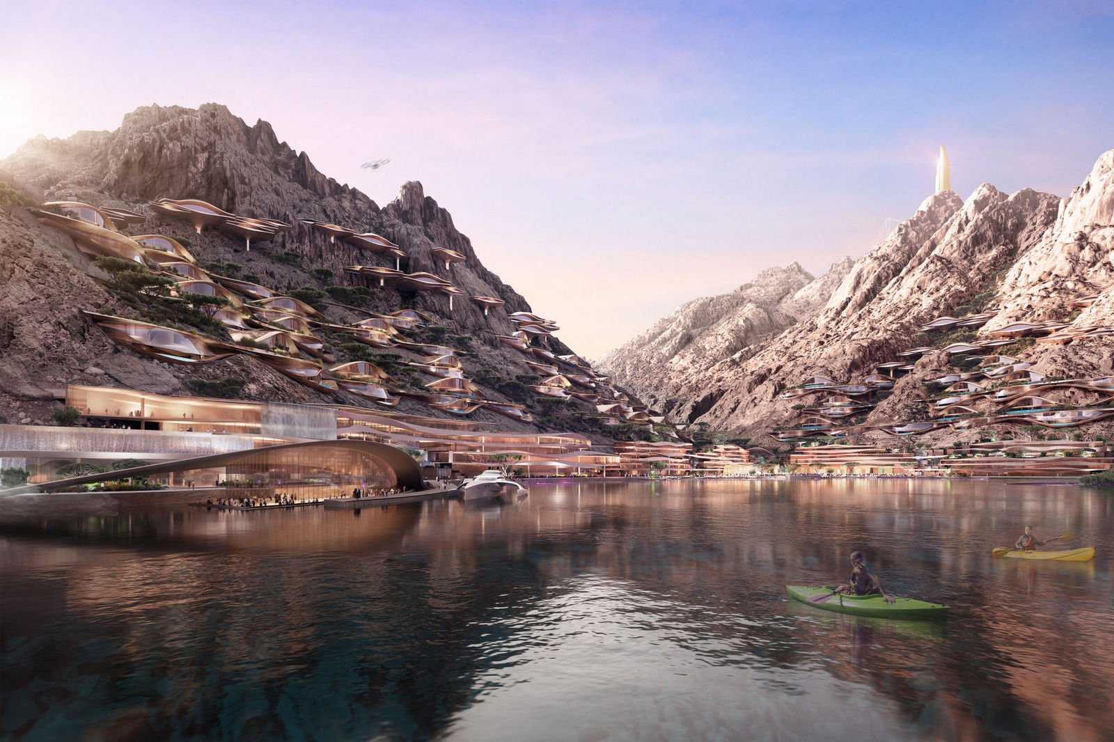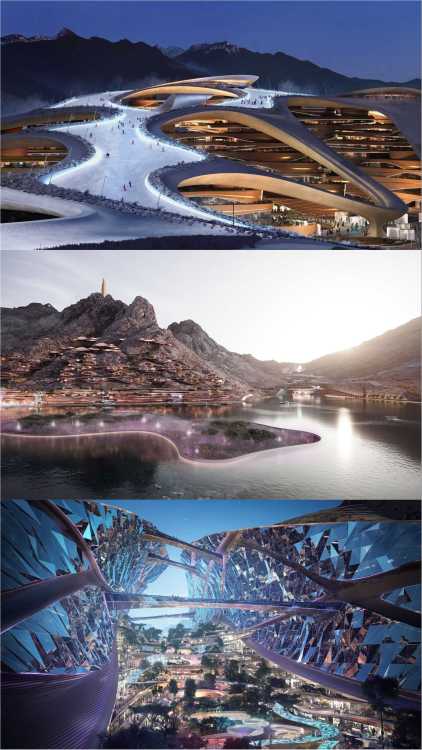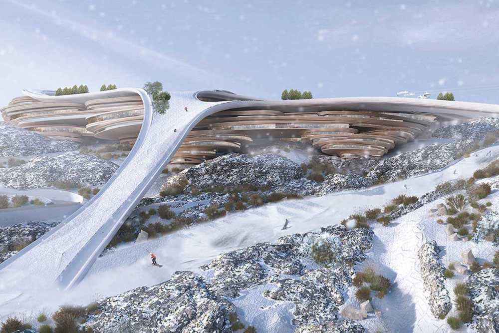 Горнолыжный курорт Trojena в Саудовской Аравии. Трассы проложат с видом на пустыню и Красное море. Trojena будет состоять из шести функциональных районов, которые спроектированы под конкретные задачи комплекса. Для размещения туристов строится вертикальная деревня с апартаментами, шале и прочими объектами в альпийском стиле. Отели курорта будут расположены рядом с искусственным пресным озером.