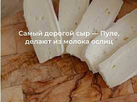 Самый дорогой сыр в Мире делают в Сербии на одной лишь ферме - из молока балканских ослиц. Животные дают совсем немного молока, а на сыр его уходит 25 литров. Т.к. производство ограничено, цена продукта достигает 1 тыс. долларов за 1 кг. Сыр называется Пуле.