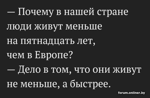 fatalist Опубликовано 3 апреля, 2019 Поделиться Опубликовано 3 апреля, 2019 (изменено) 1 час назад, Анна2207 сказал: .....насчет современности их образования я все же усомнюсь. ..... Я бы много что мог сказать о медицине в РБ, но всё равно жеж, никто не поверит... ОНИ, белорусские врачи, в прямом смысле меня поставили на ноги, причем бесплатно. Правда... пришлось получить паспорт РБ. В Москве, почти 5 лет, и около двух лямов рублей (хорошо не $ ), не дали, абсолютно, никакого результата. Вот чуток что пресса пишет, не белорусская... Зы... не все и везде гуд. Это безусловно, но... сравнение с РФ... я бы даже и не проводил. И в повседневной медицине, и в экспериментальной.... Зы... больше десятка уже друзей привозил в РБ на лечение и операции из РФ, Украины, Сербии, Черногории... всё гуд. Про зубы даже не говорю. друзья-приятели , почти каждую неделю ездят в МИнск...... При чем, бОльшая часть москвичи. Хы.. кто дружит с английским, отчет ФОЗ за 2018 год. Тоже интересно про РБ. Изменено 3 апреля, 2019 пользователем fatalist Цитата Мнение автора может не совпадать с его точкой зрения. Ссылка на комментарий Поделиться на другие сайты Поделиться